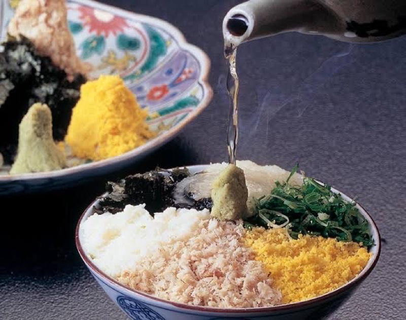 こちらの鯛めしはお茶漬けのようにして食べるもので、薬味をご飯の上に少しずつよそって特製の出汁をかけて食べるそうです。